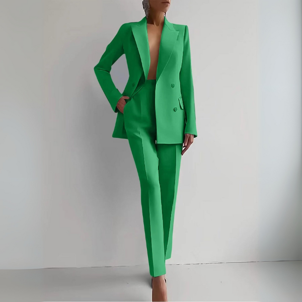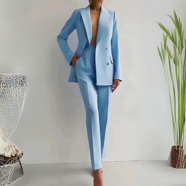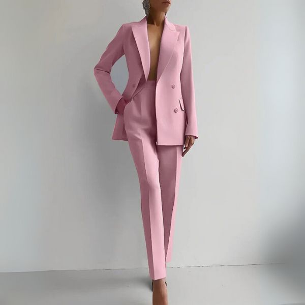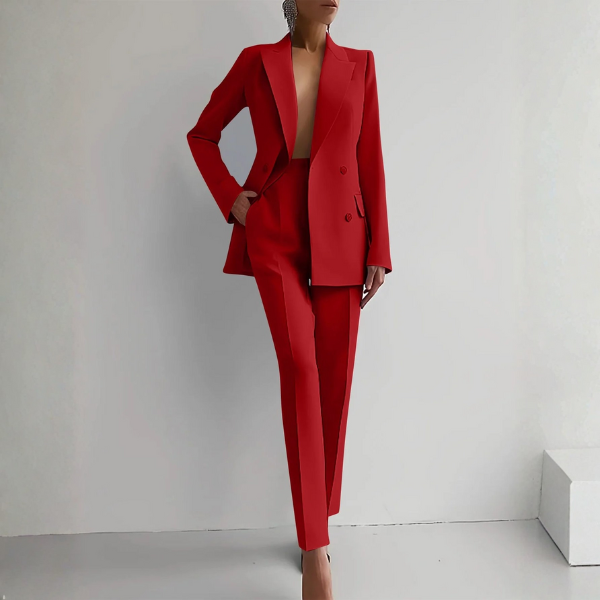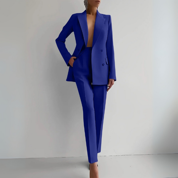 The sharply cut double-breasted blazer sculpts your waist and adds definition to your shoulders – creating a powerful yet feminine silhouette that flatters every figure.